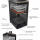 El horno está fabricado con acero inoxidable 304 de gran espesor para uso alimentario, la base se fabrica en acero de 8mm con recubrimiento modular fácilmente desmontable, que a su vez realiza la función de deflector consiguiendo la temperatura ideal del horno muy rápidamente.